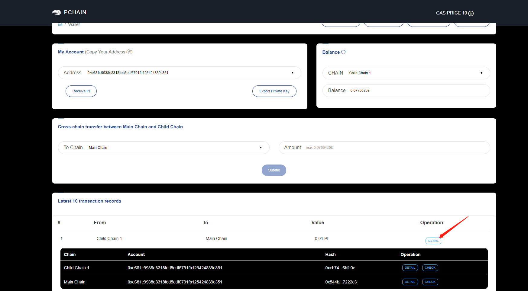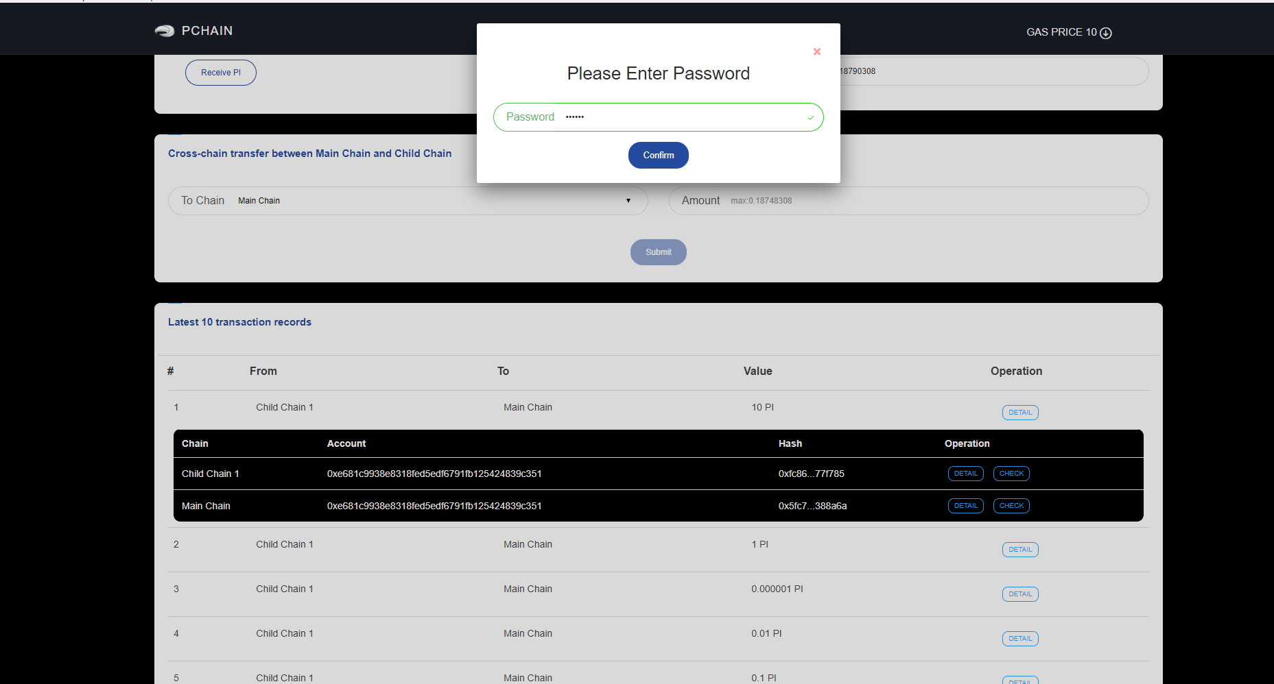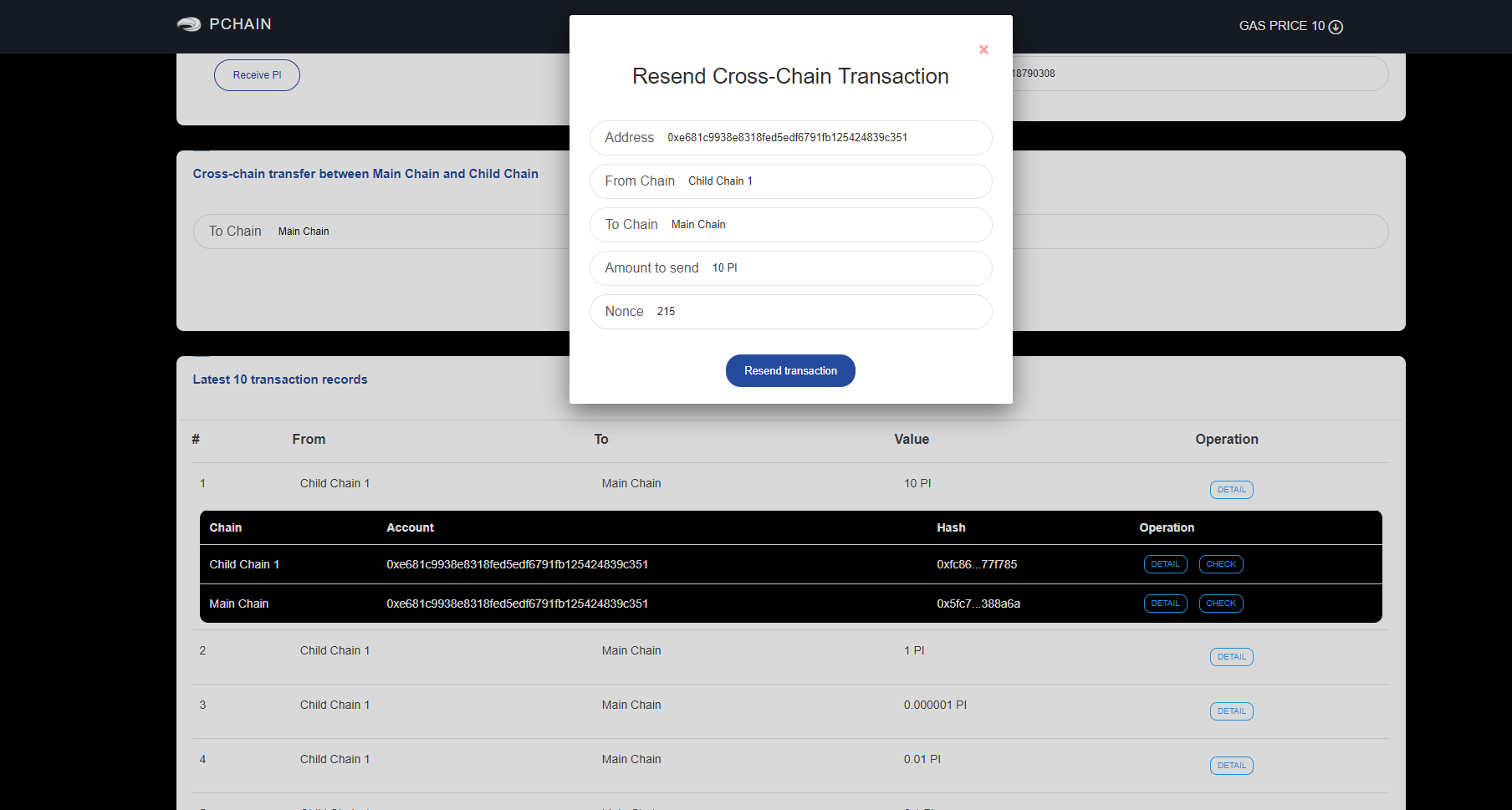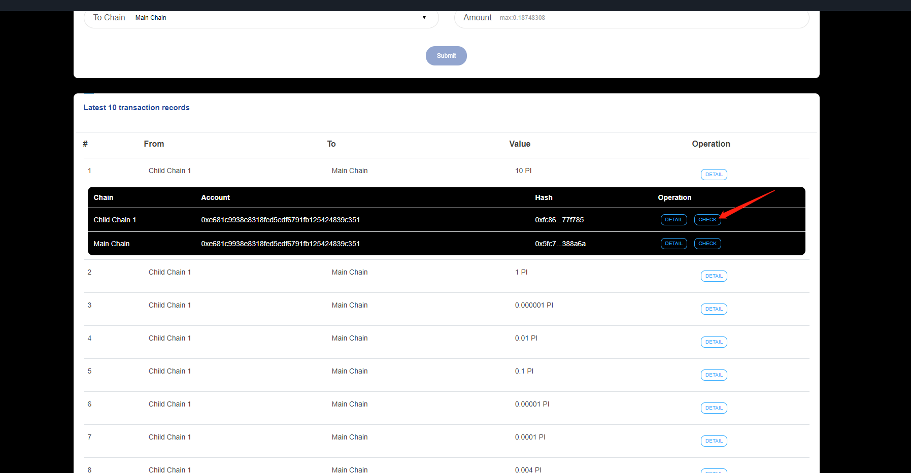 If you have sent a cross chain transaction from child chain to main chain/ from main chain to child chain successfully but have not received PI, and also there is no record of this transaction in the piwallet section “Latest 10 transaction records” then please follow the steps below to recover your PI.