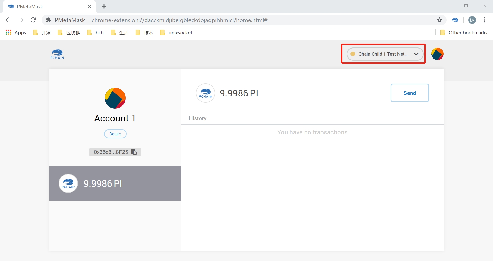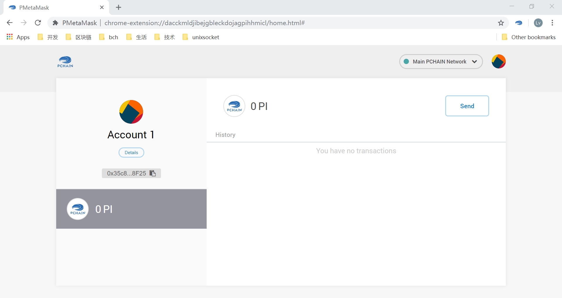 After create or import address by following the guide of PMetamask,you can see something look like this: