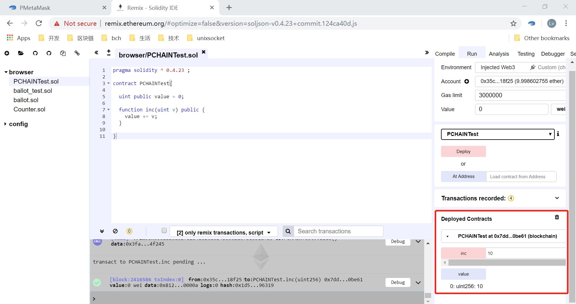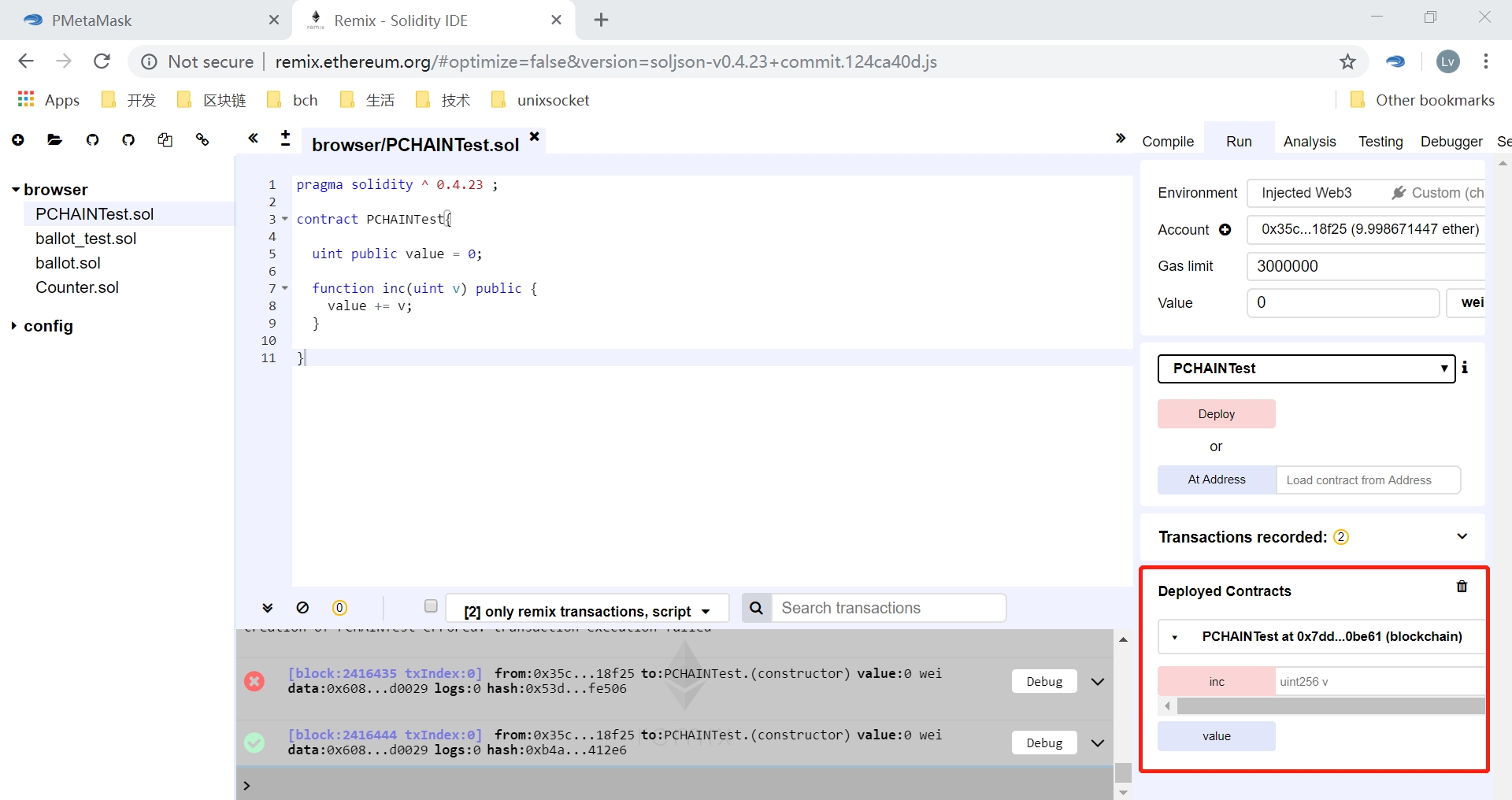 After deployed successfully, you can debug the contract If there are operations need to spend Gas, you may need confirm in the pop-up PMetamask dialog or in PMetamask directly.If the transaction failed, you can try to resend it or change the gas fee according to the returned error.