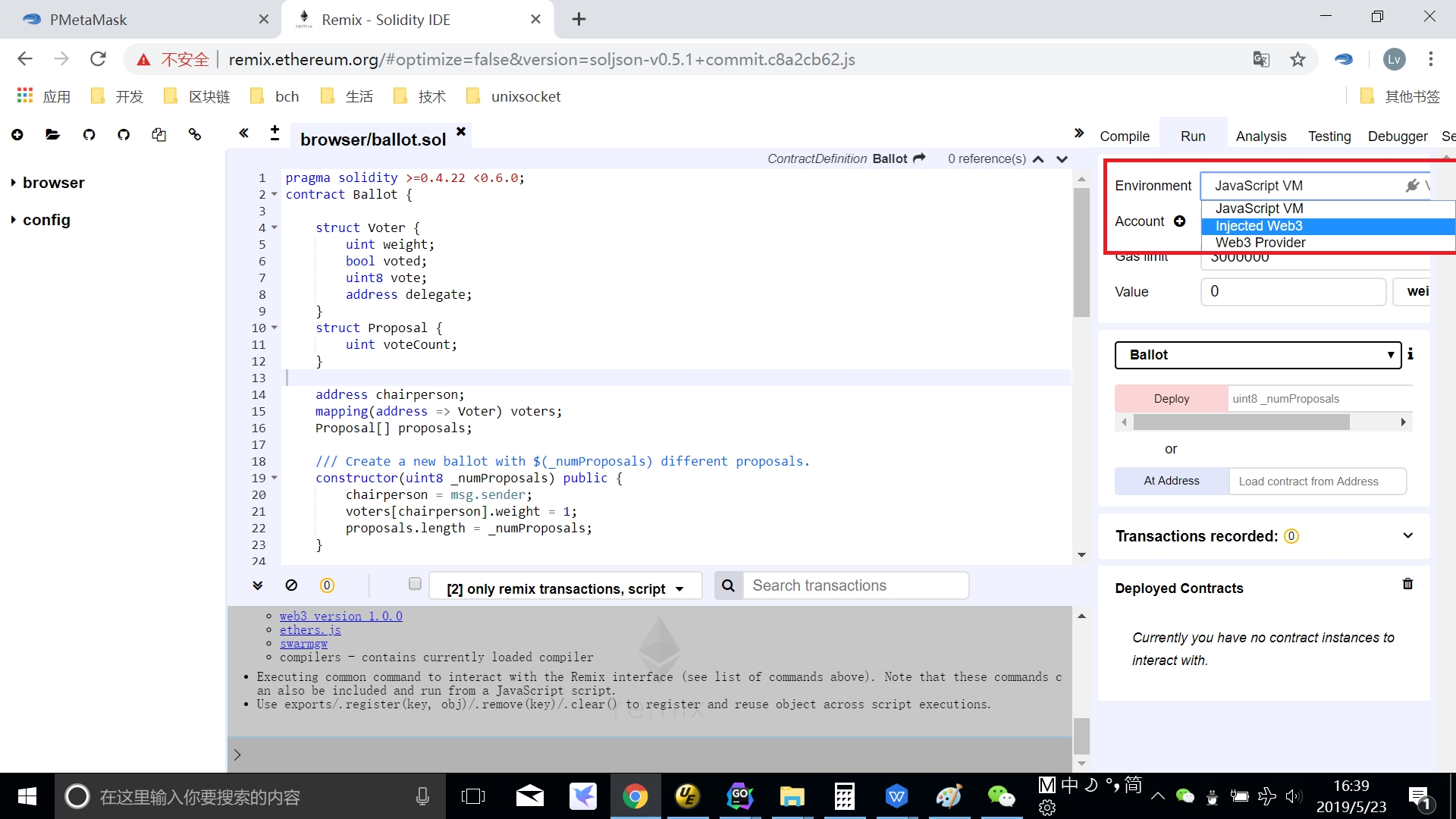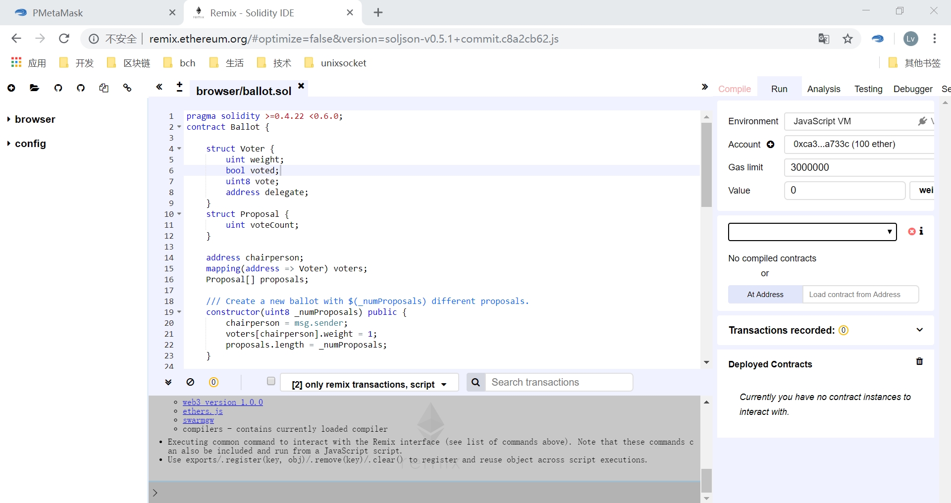 Keep PMetamask opening,open Remix【http://remix.ethereum.org】 the page is look like this:
