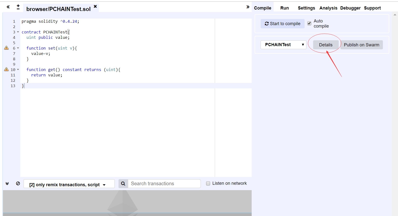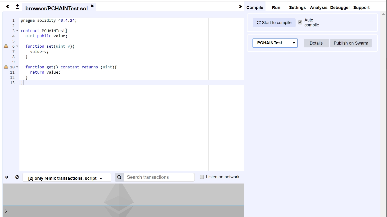 We recommend using an online compiler to compile smart contracts. If you want to test your smart contract, it’s better to deploy it on testnet first. You can install Pchain testnet and get free tPI from our testnet.