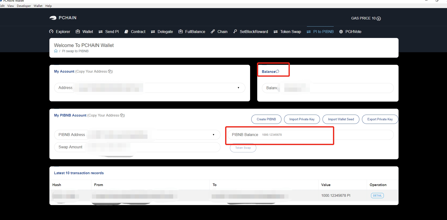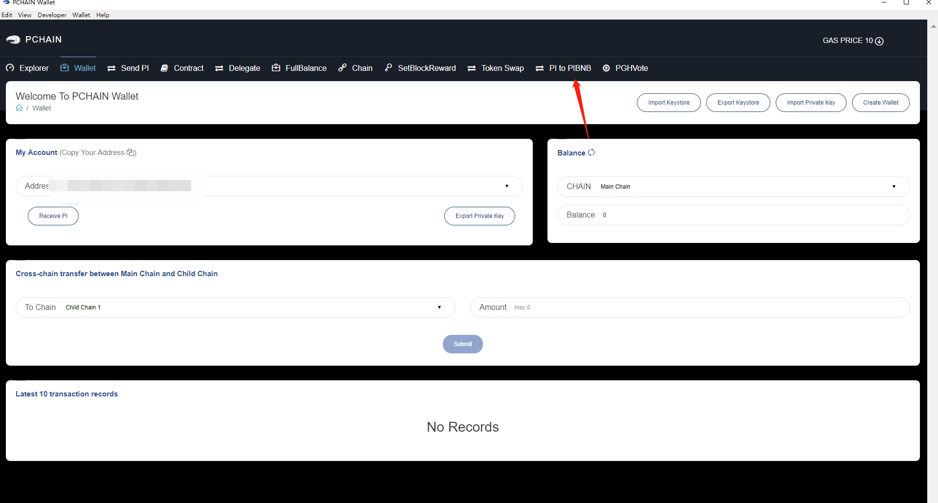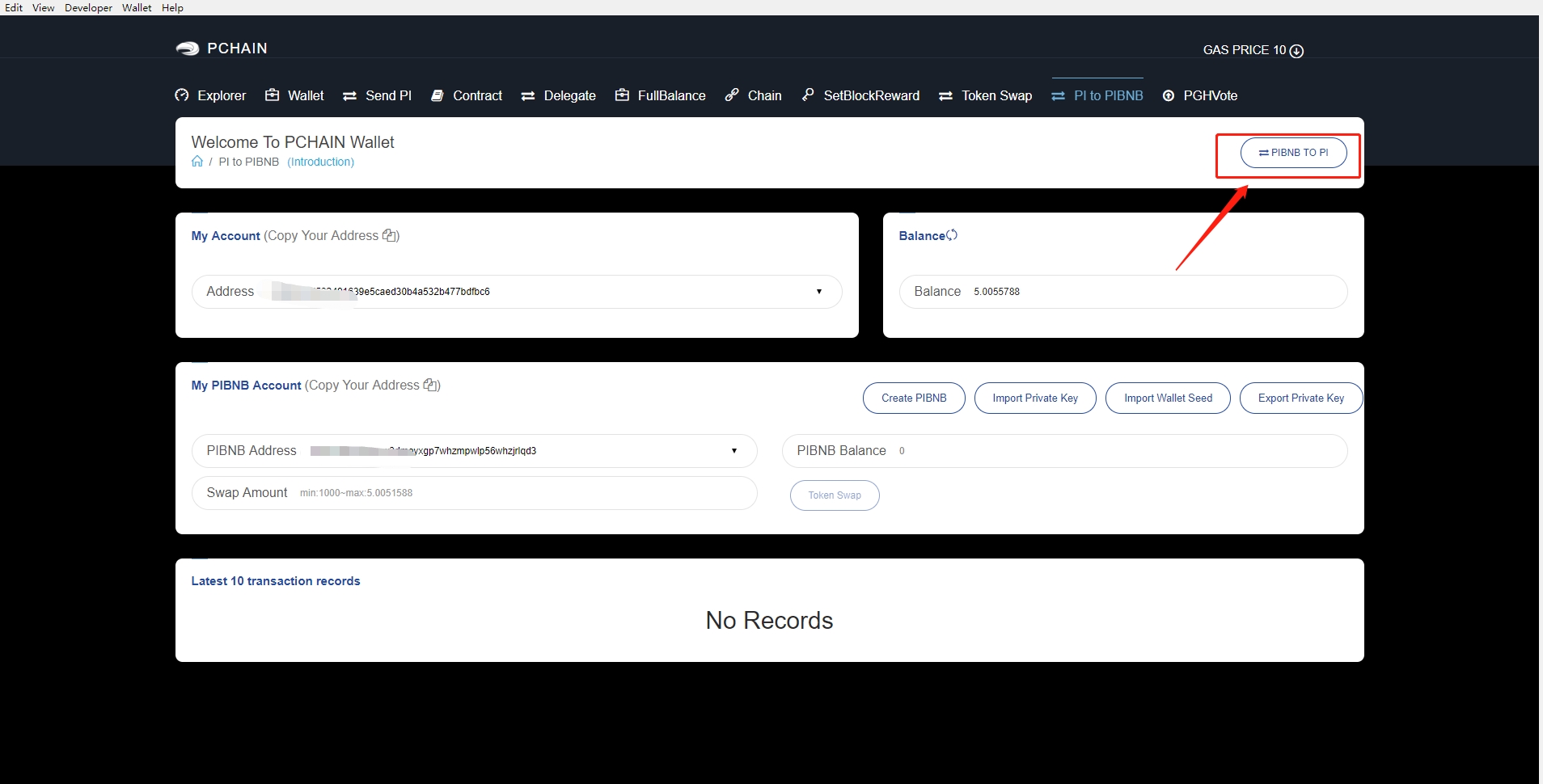 Step 1: Open the PIwallet and click ‘PI to PIBNB’ tab.