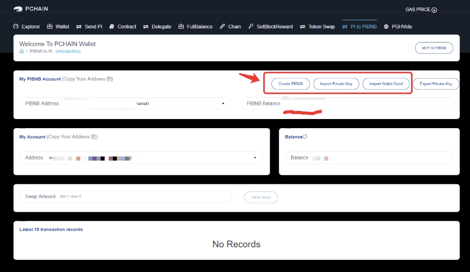 After create or import your PIBNB address and PIBNB balance will show in ‘My PIBNB Account’.